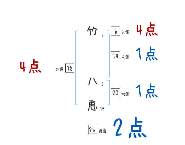 竹八恵さんの画数の鑑定結果