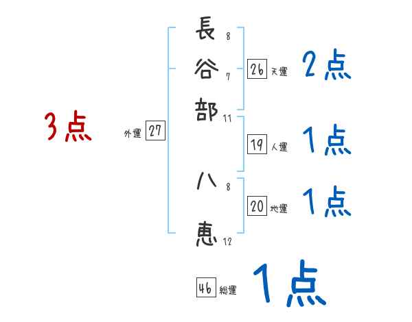 天運![]() | 長谷部八恵さんの天運は26画の2つ星!波瀾万丈かも。信頼できる人を大事にしましょう。 家系が持つ宿命的な運勢を表します。祖先から受け継いだ苗字ですので自分の力が及びません。家柄を象徴します。 |