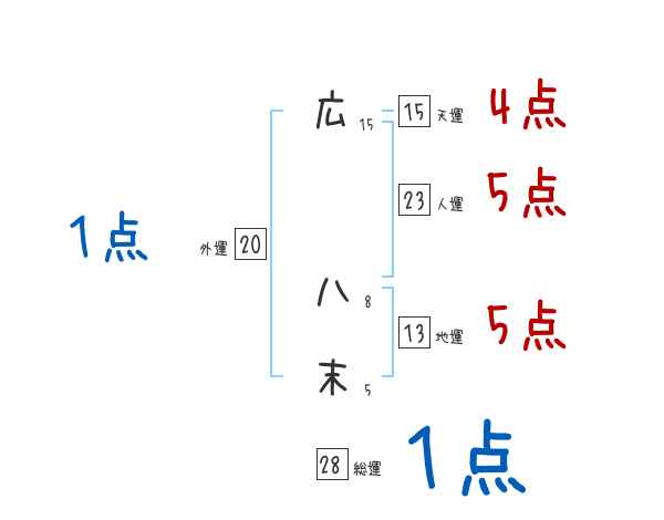 家系が持つ宿命的な運勢を表します。祖先から受け継いだ苗字ですので自分の力が及びません。家柄を象徴します。