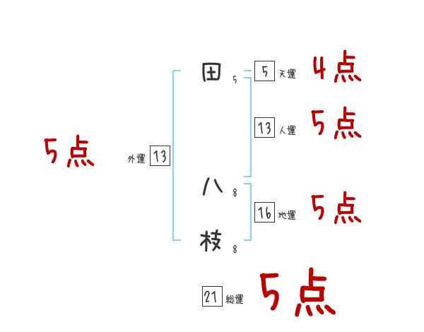 田八枝さんの画数の鑑定結果