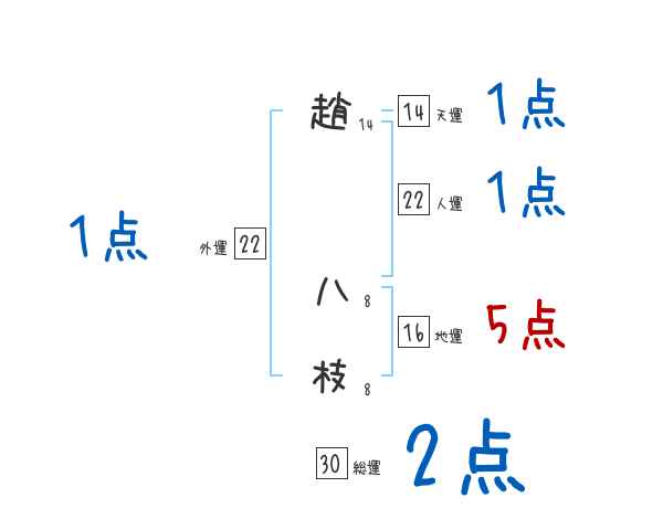 趙八枝さんの画数の鑑定結果