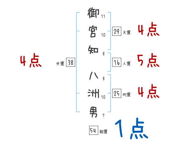 御宮知八洲男さんの画数の鑑定結果