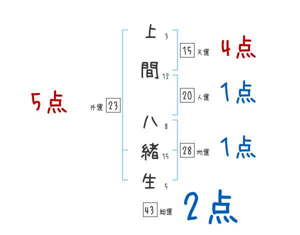 上間八緒生さんの画数の鑑定結果