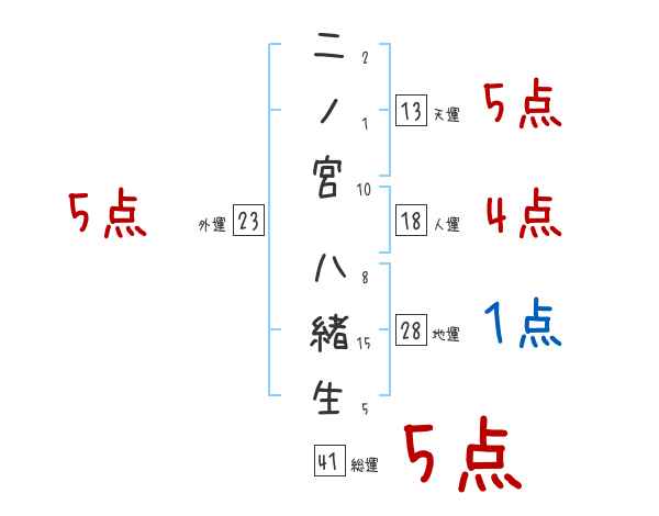 二ノ宮八緒生さんの画数の鑑定結果