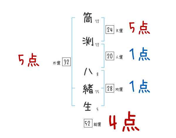 筒渕八緒生さんの画数の鑑定結果