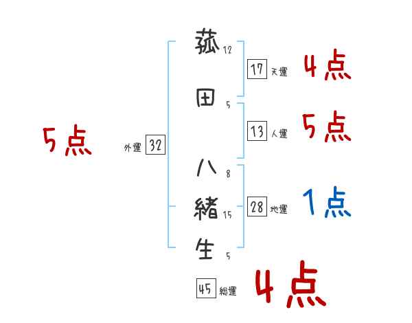 菰田八緒生さんの画数の鑑定結果