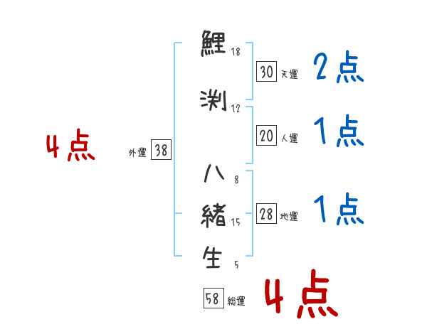 鯉渕八緒生さんの画数の鑑定結果