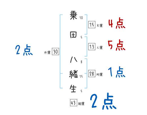 乗田八緒生さんの画数の鑑定結果