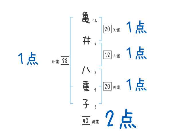 亀井八重子さんの画数の鑑定結果