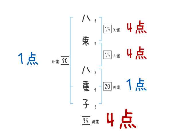 八束八重子さんの画数の鑑定結果