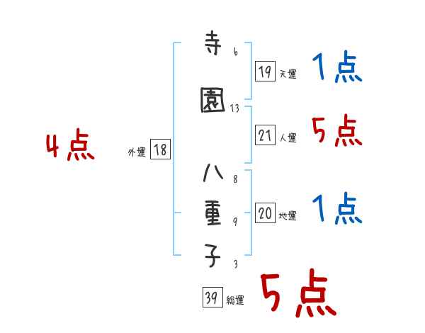寺園八重子さんの画数の鑑定結果