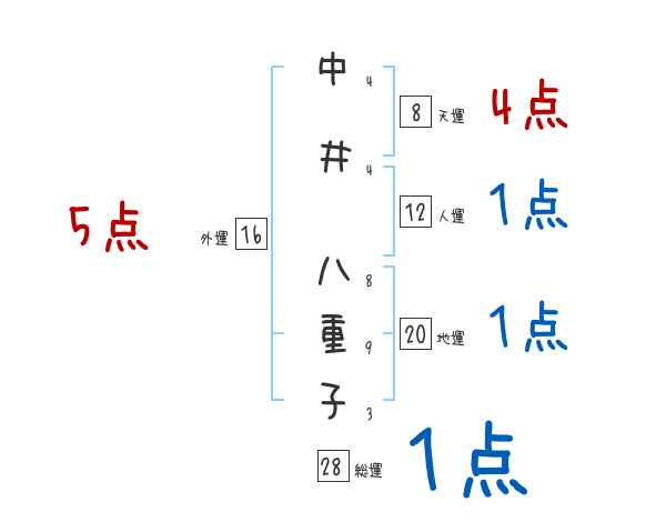 中井八重子さんの画数の鑑定結果