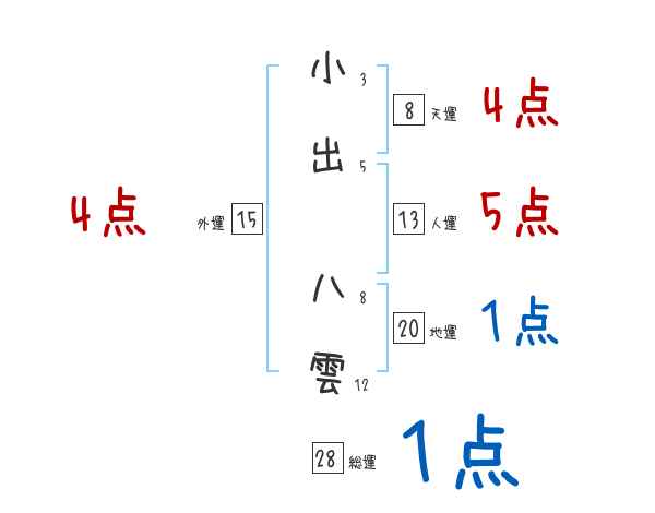 小出八雲さんの画数の鑑定結果