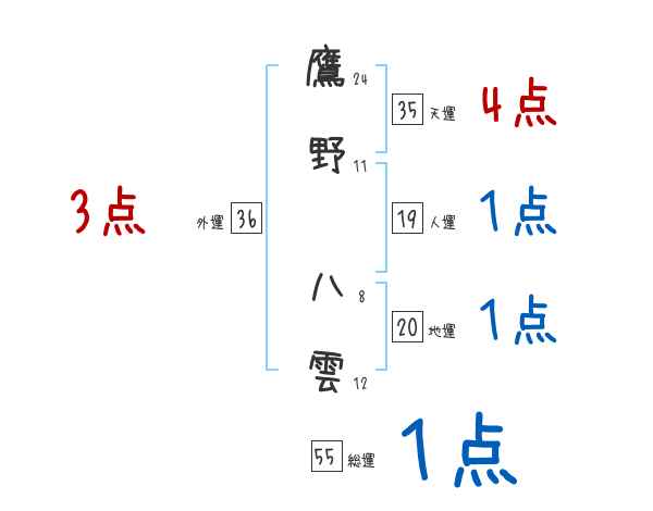 鷹野八雲さんの画数の鑑定結果