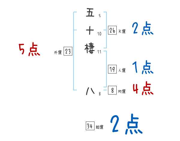 外運![]() | 五十棲八さんの外運は23画の5つ星!想像力に優れ活力がある。一代で成功し名誉を手に入れる。 生活面を象徴する運勢です。外部から受ける影響力を表し、結婚運、家庭運や職場、環境への順応性を表します。 |