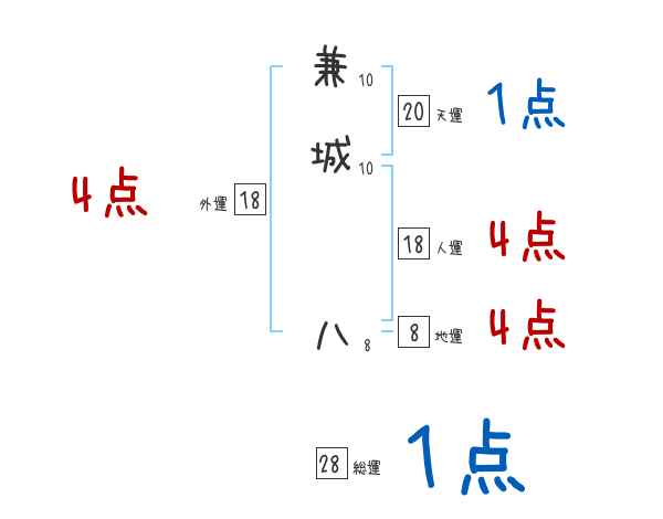 兼城八さんの画数の鑑定結果