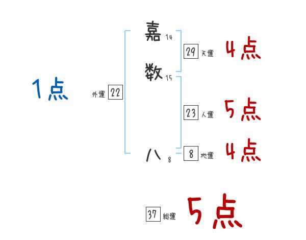 嘉数八さんの画数の鑑定結果