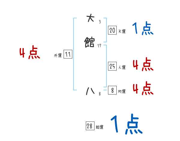 大館八さんの画数の鑑定結果