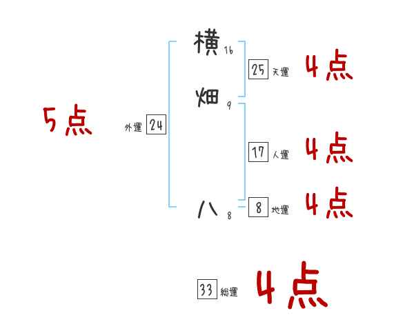 横畑八さんの画数の鑑定結果