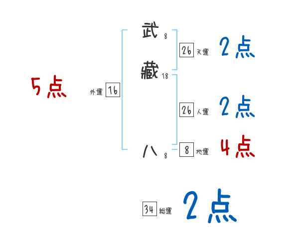 武藏八さんの画数の鑑定結果
