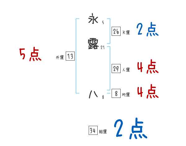 永露八さんの画数の鑑定結果
