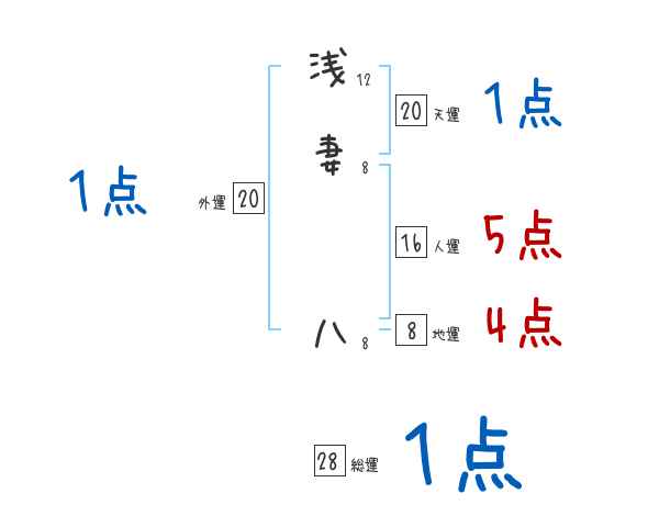 浅妻八さんの画数の鑑定結果