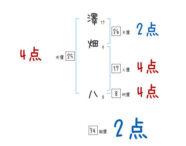 澤畑八さんの画数の鑑定結果