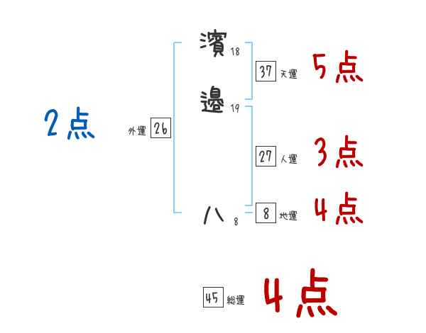 濱邉八さんの画数の鑑定結果
