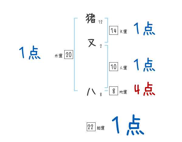 猪又八さんの画数の鑑定結果