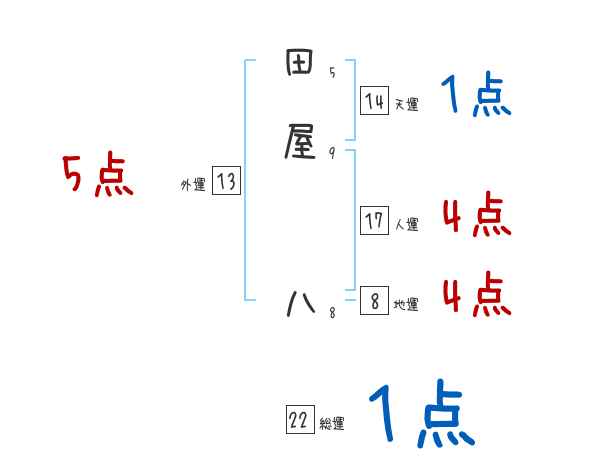田屋八さんの画数の鑑定結果