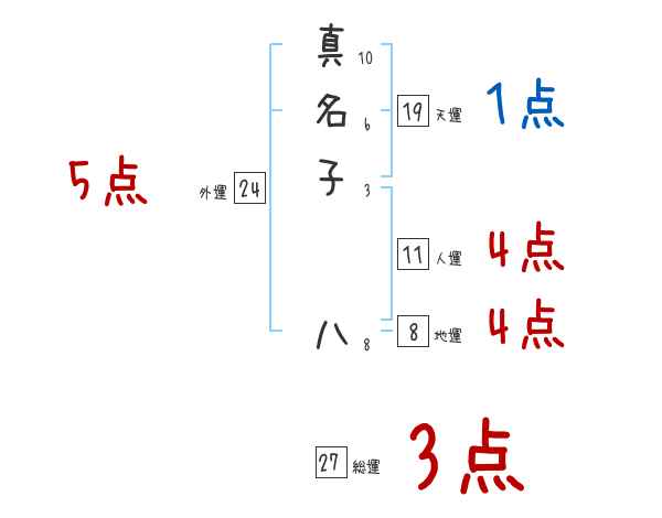 真名子八さんの画数の鑑定結果