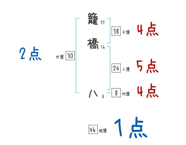 籠橋八さんの画数の鑑定結果