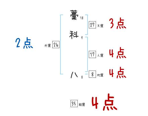 藁科八さんの画数の鑑定結果