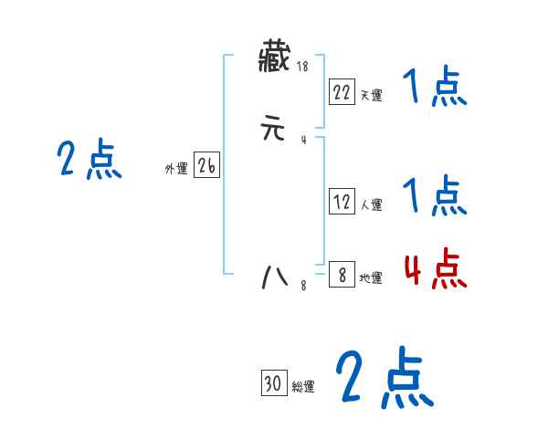 天運![]() | 藏元八さんの天運は22画の1つ星!努力することが苦手ないっぽう手先が器用。芸術性にも優れる。 家系が持つ宿命的な運勢を表します。祖先から受け継いだ苗字ですので自分の力が及びません。家柄を象徴します。 |