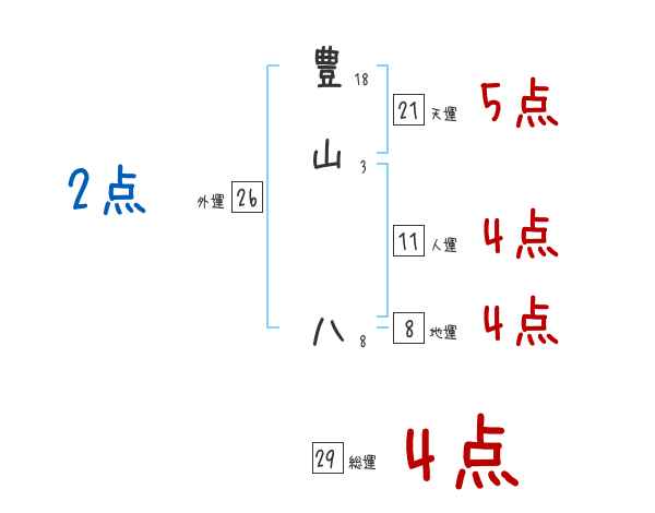 豊山八さんの画数の鑑定結果