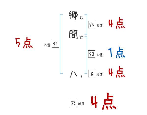 郷間八さんの画数の鑑定結果