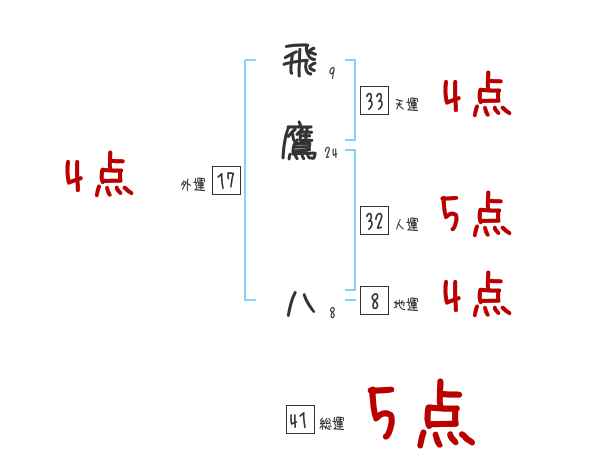 飛鷹八さんの画数の鑑定結果