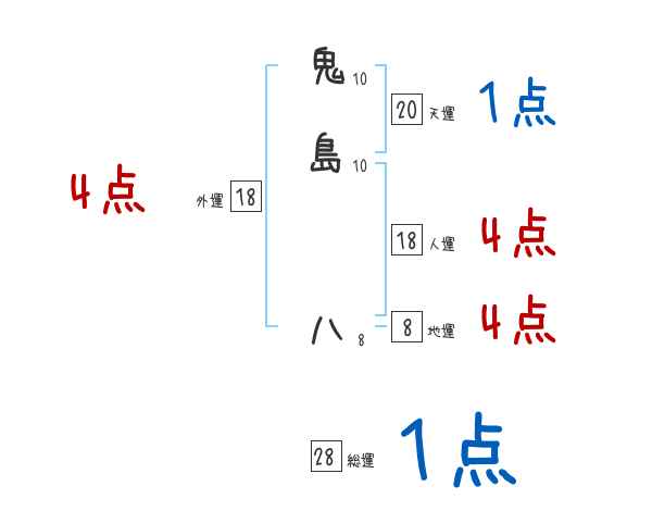 鬼島八さんの画数の鑑定結果