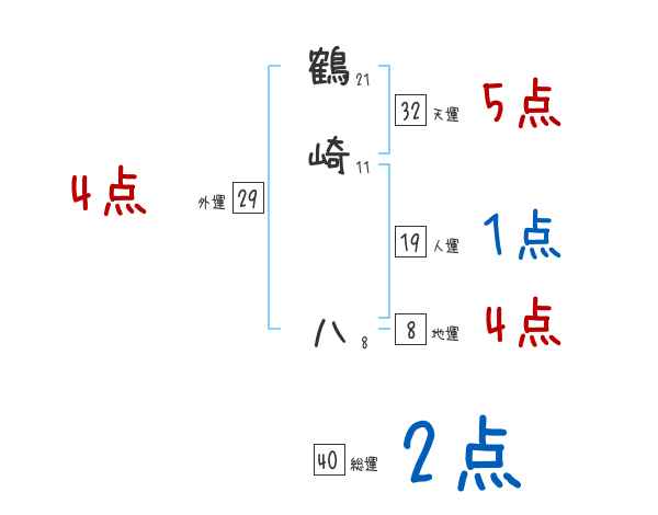 鶴崎八さんの画数の鑑定結果