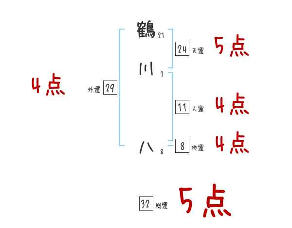 鶴川八さんの画数の鑑定結果