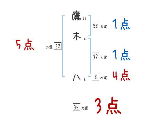 鷹木八さんの画数の鑑定結果
