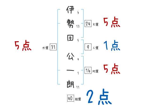 伊勢田公一朗さんの画数の鑑定結果