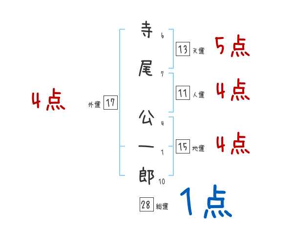 寺尾公一郎さんの画数の鑑定結果