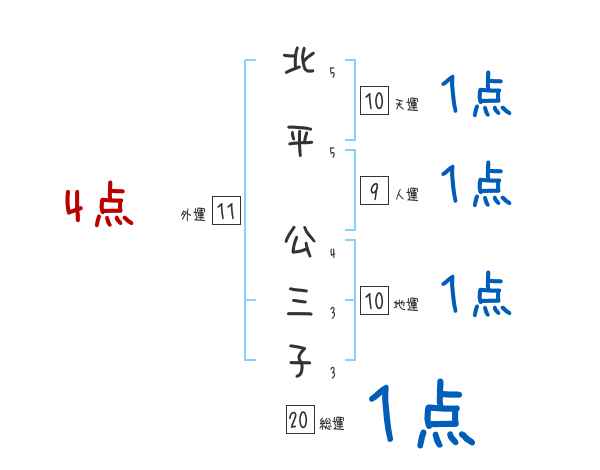 天運![]() | 北平公三子さんの天運は10画の1つ星!不安を感じやすい傾向。ストレスを抱えないように注意しましょう。 家系が持つ宿命的な運勢を表します。祖先から受け継いだ苗字ですので自分の力が及びません。家柄を象徴します。 |
