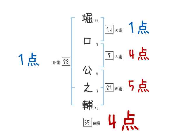 堀口公之輔さんの画数の鑑定結果