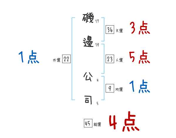 磯邊公司さんの画数の鑑定結果