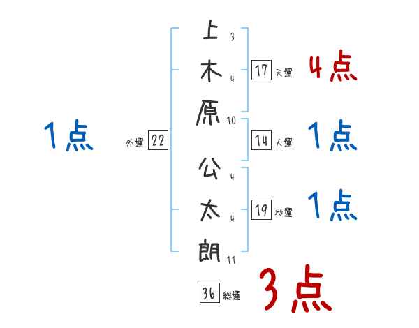 総運![]() | 上木原公太朗さんの総運は36画の3つ星!先見性が豊かです。多少神経質で苦労することも。 あなたの人生を表す1番重要な運勢です。生涯を通じて影響する総合運となり、主に50歳以降の晩年期に影響を及ぼします。 |