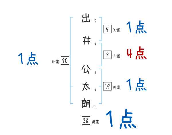 出井公太朗さんの画数の鑑定結果