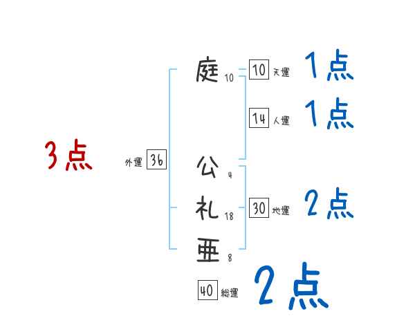 庭公礼亜さんの画数の鑑定結果