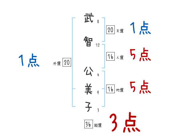 人運![]() | 武智公美子さんの人運は16画の5つ星!人望が厚く大きく発展する。逆転成功が見える。 性格や才能などを表す2番目に重要な運勢です。人間関係や協調性、社会的な成功に影響します。主に20歳から50歳ぐらいまでの中年期の運勢を表します。 |